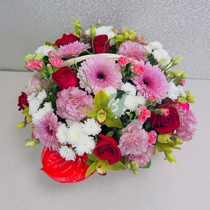 Яркие брызги красок и неповторимый аромат сбора цветов – все это корзина “Яркий микс”, которую можно заказать с доставкой в любое время.